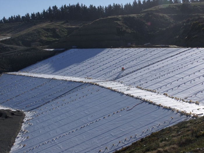 3、在填埋场底部,如果裂口的长度超过卷材宽度10%,损坏的部分须被切掉,然后将两部分土工布连接起来。