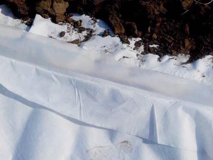 土工布作为土工膜的保护层,使保护防渗层不受损坏。为减少紫外线照射,增加抗老化性能,更好采用埋入法铺设。