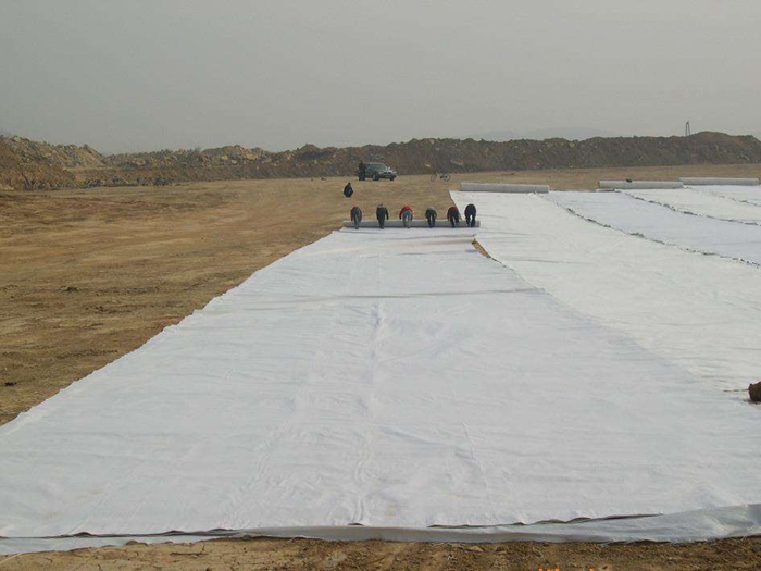 土工布作为土工膜的保护层,使保护防渗层不受损坏。为减少紫外线照射,增加抗老化性能,更好采用埋入法铺设。